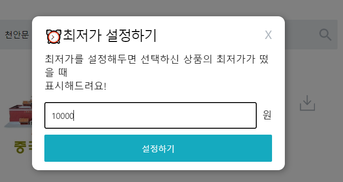 관심상품의 최저가 등록 하한가보다 낮은 경우 표시 |