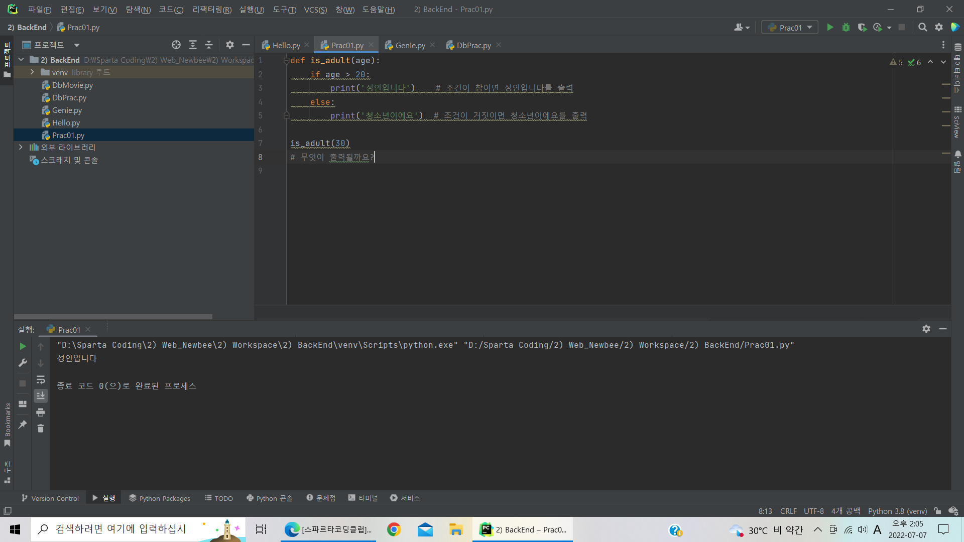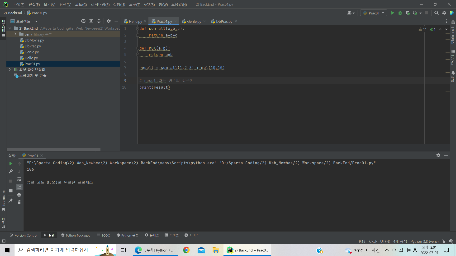 어찌 되었건.. 저급 언어인 Java에서 한 발자국 더 나아가 고급언어인 Python을 처음 접해본 것이다.