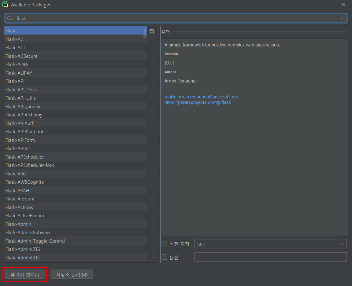 파이참에서 Flask를 임포트 해주면 끝이야.
