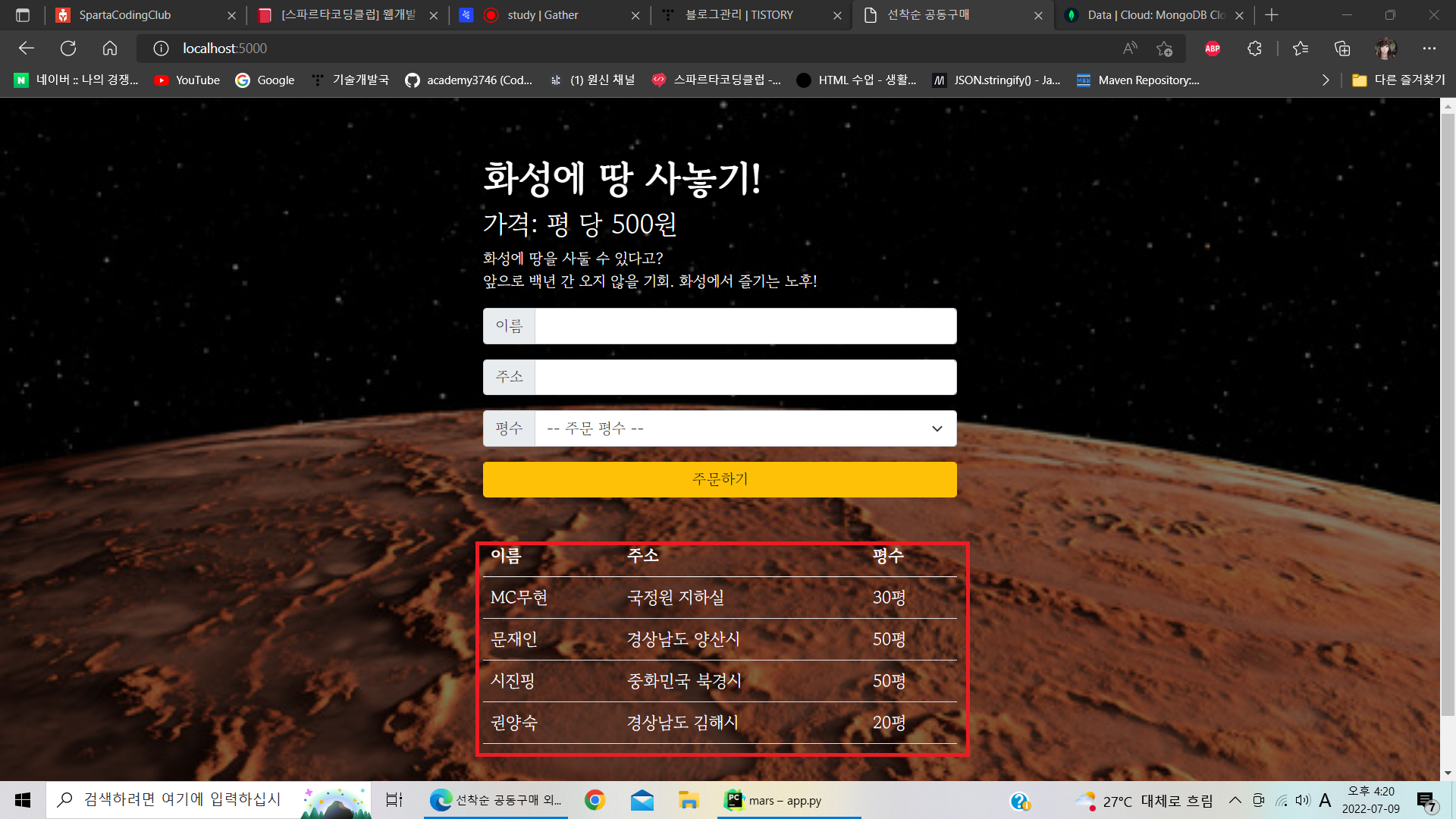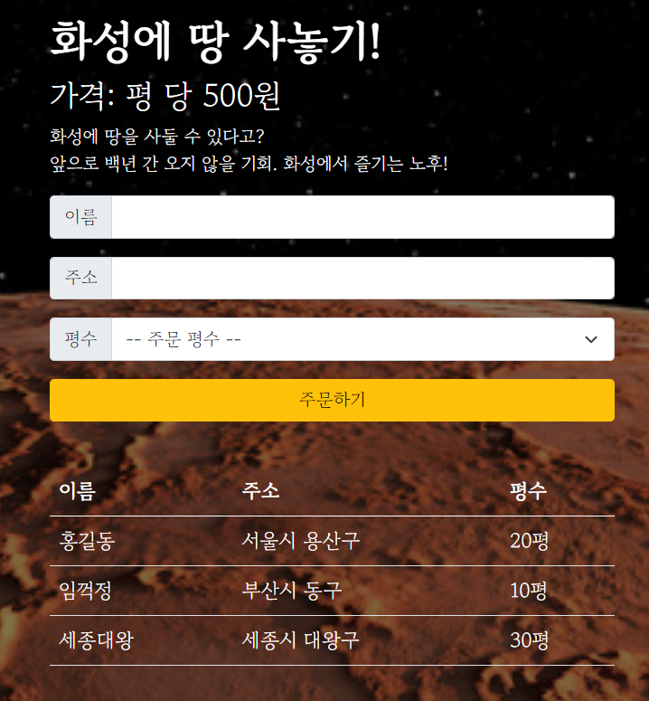 입주자의 이름과 주소, 희망 평수 정도를 등록 (POST)한 다음..