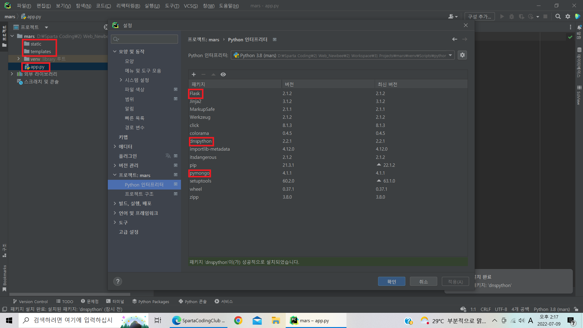 앞으로 플라스크 환경에서 프로젝트를 만들 때는 필자가 알려주는 선수과정을 가급적 외우도록 해라.