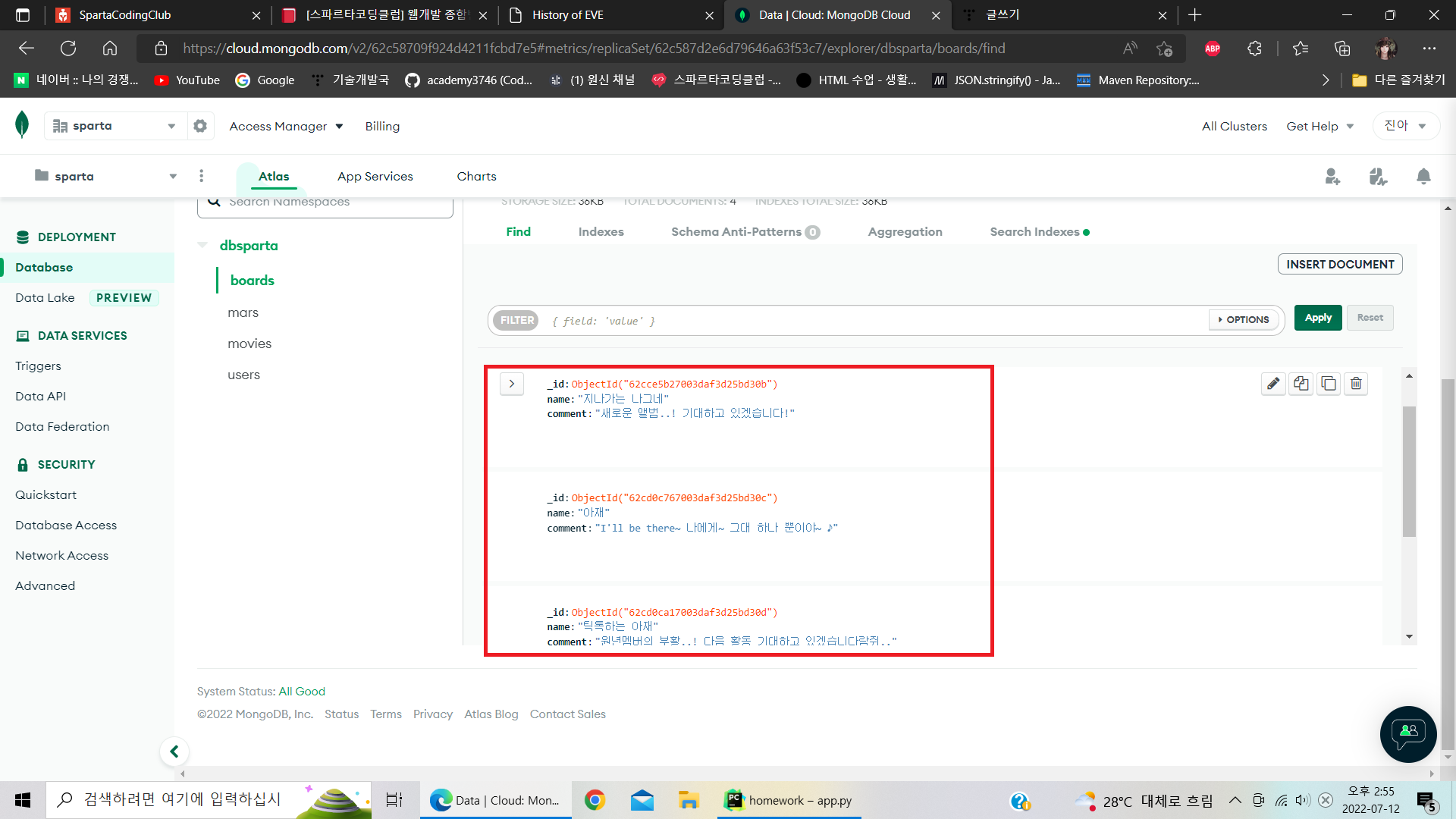거기에 상응하는 pymongo의 SQL문을 긁어왔을 뿐이다.