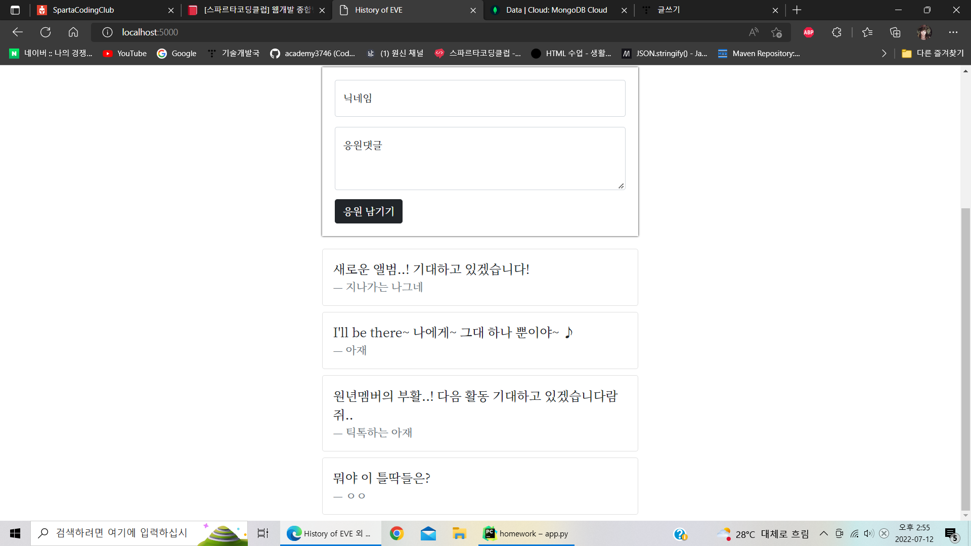다음 시간부터는 그동안 우리가 만든 예제들을 좀 더 다듬어 정식 웹 서비스로 배포해보자.