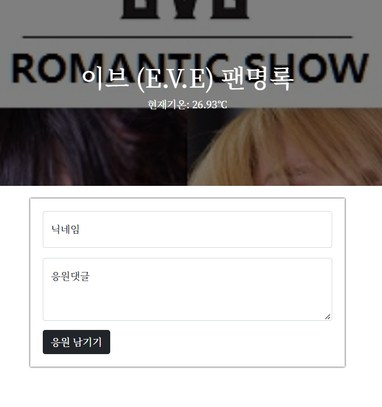 컬럼 안에 name과 comment 두 개의 변수를 INSERT 해주는 것이 목적이다.