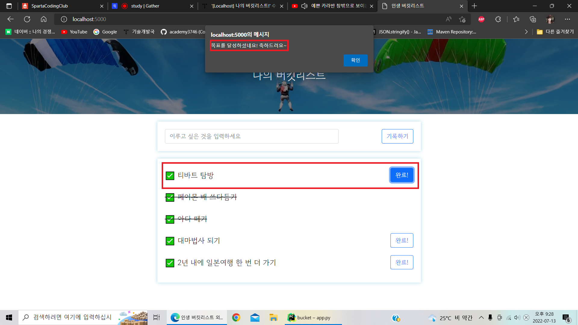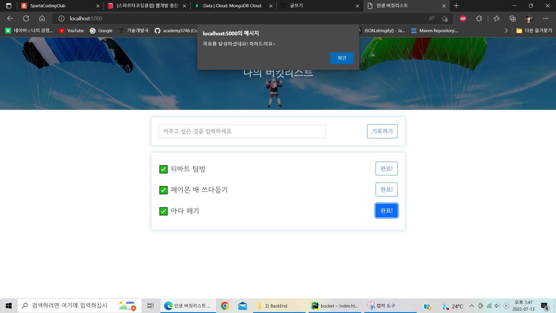 return jsonify({'msg': '목표를 달성하셨네요! 축하드려요~'})
