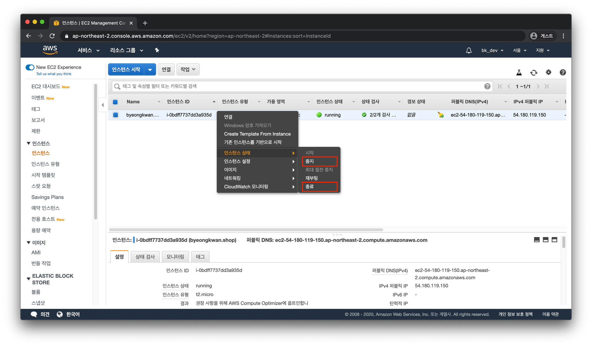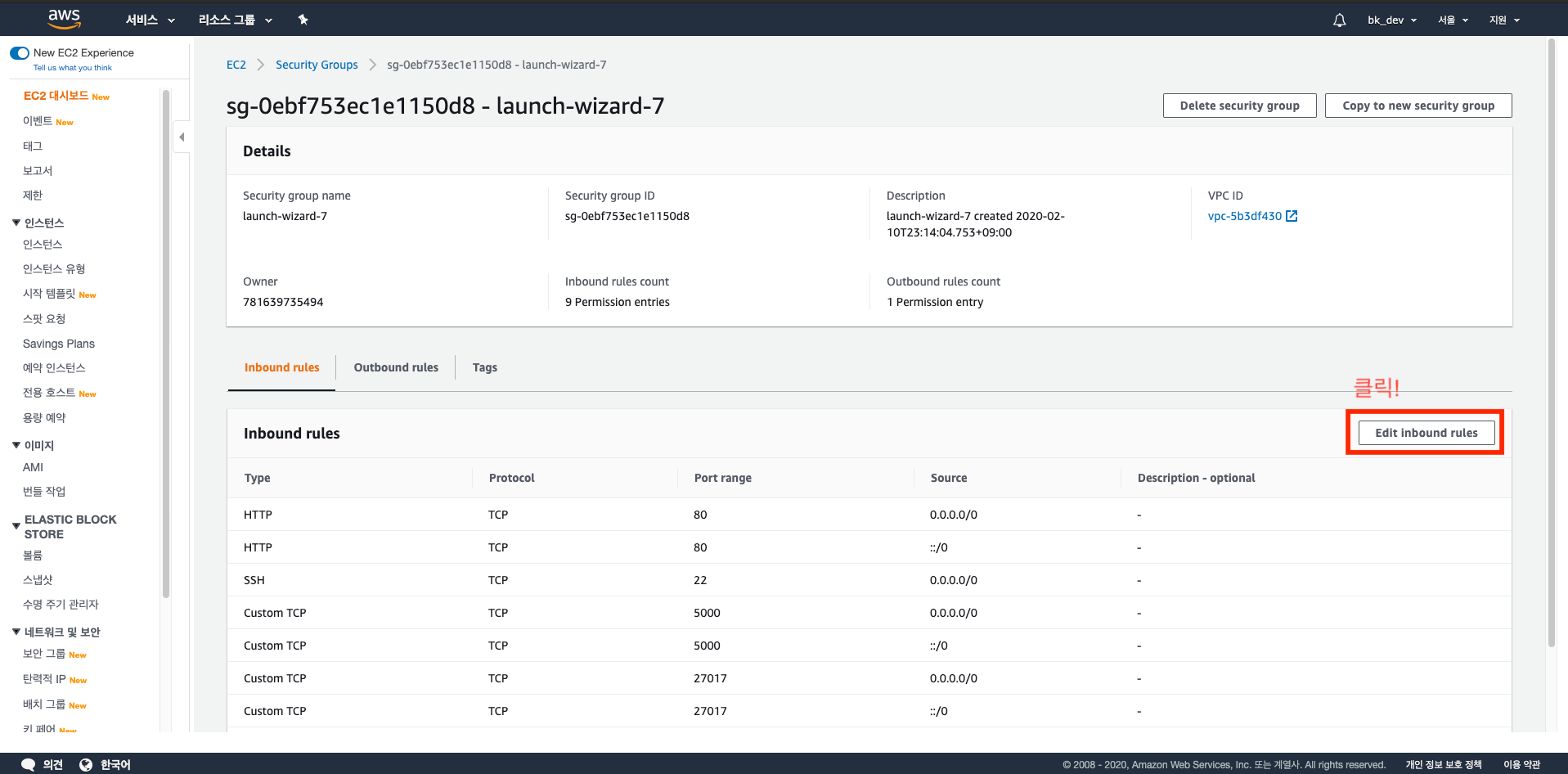 IP 주소는 인스턴스 생성할 때 할당받은 IPv4 그 녀석 알지?