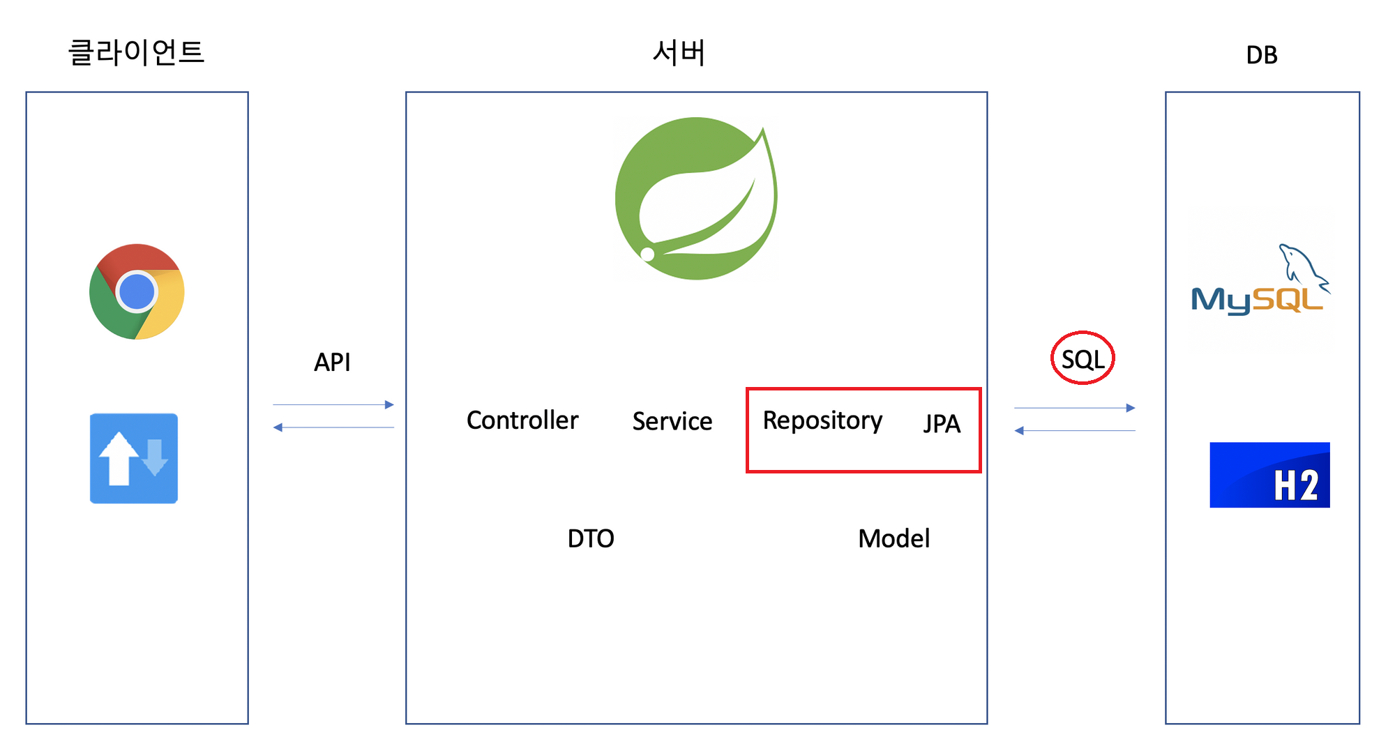 한 눈에 보기에도 Repository와 DB 사이에서 SQL Query를 열심히 번역 (Interpreter) 을 하고 있다.