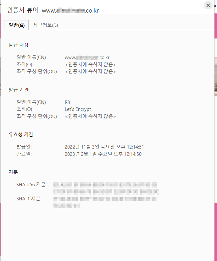 ※ Let's Encrypt 인증서는 일주일에 5회만 설치할 수 있다.
