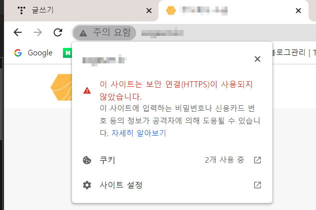 그때는 HTTPS가 비활성화 되면서 헤더에 빗금이 그어질 것이다.